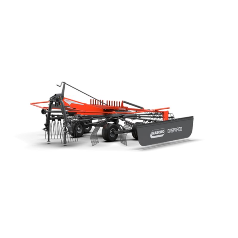 - CHÂSSIS : Attelage articulé, roues de support positionnées devant le rotor, rideau formateur d’andain réglable,