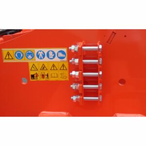 Des boulons de rechange sont positionnés sur l’attelage de la machine, position accessible et sûre. Leurs présences permettent de réduire au maximum les temps d’arrêt pour leur remplacement.