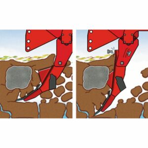 Dans la version mécanique, la sécurité est garantie par le boulon de cisaillement. Dans la version HYDRO, disponible jusqu’à 4 mètres et avec 9 dents, la sécurité est double grâce à la combinaison du boulon de cisaillement et du système hydropneumatique. Si la pression sur la pointe dépasse l’équivalent de 900 kg, la protection hydropneumatique intervient, en effaçant progressivement la dent. Si l’obstacle n’est pas surmonté et que la poussée sur la pointe augmente, le boulon de cisaillement est cassé pour éviter d’endommager la structure, ce qui permet le basculement complet de la dent. Le surdimensionnement généreux de l’outil lui permet de travailler en toute sécurité même sur des terrains très difficiles.